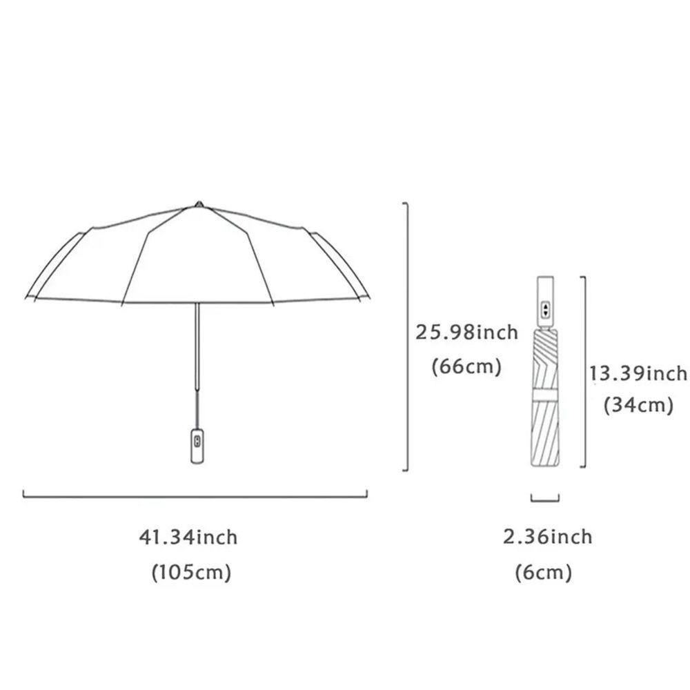 Parasol jest automatyczny — wystarczy nacisnąć przycisk, by błyskawicznie się otworzył i ochronił Cię przed deszczem. Po złożeniu osiąga długość około 34 cm – idealny, by zabrać go wszędzie, nawet w mniejszej torebce. Po otwarciu zapewnia przyzwoitą średnicę przykrycia – co oznacza, że spokojnie zmieścisz się pod nim sam lub z towarzyszem.