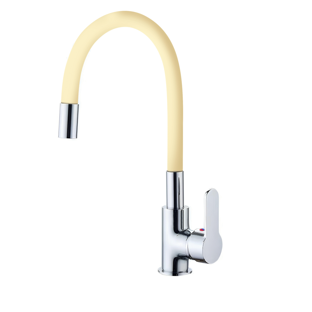 Elastyczna bateria kuchenna z giętką wylewką w kolorze beżowym to praktyczne i stylowe rozwiązanie do każdej kuchni. Dzięki obrotowi 360° zapewnia pełną swobodę ruchu i komfort podczas zmywania czy napełniania naczyń, a jej elegancki wygląd doskonale komponuje się z nowoczesnym wnętrzem.