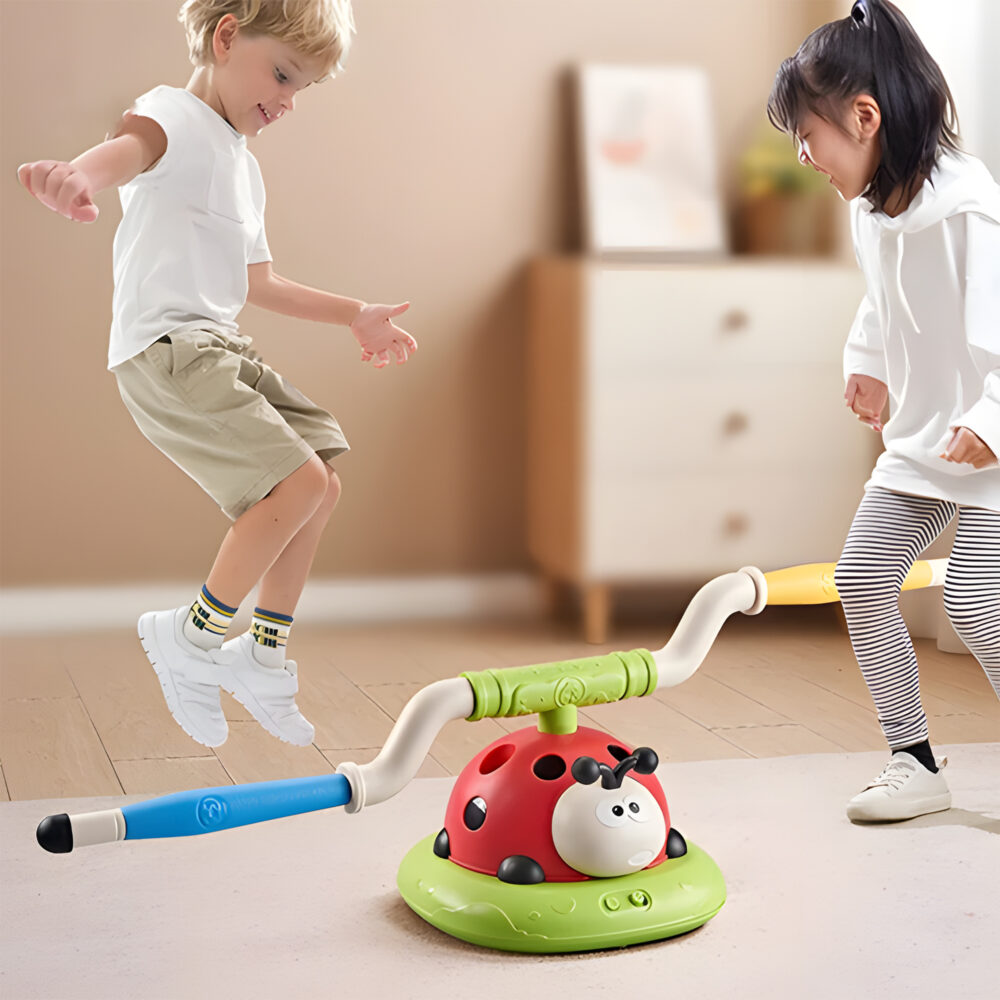 Ta innowacyjna skakanka porusza się automatycznie, dzięki czemu dziecko nie musi jeszcze umieć skakać na skakance, aby świetnie się bawić!