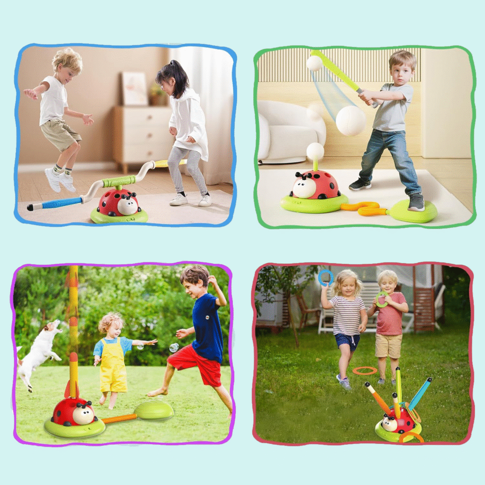 GRA SPORTOWA ZRĘCZNOŚCIOWA DLA DZIECI 3w1 – SKAKANKA | RZUT DO CELU | WYRZUTNIA RAKIET