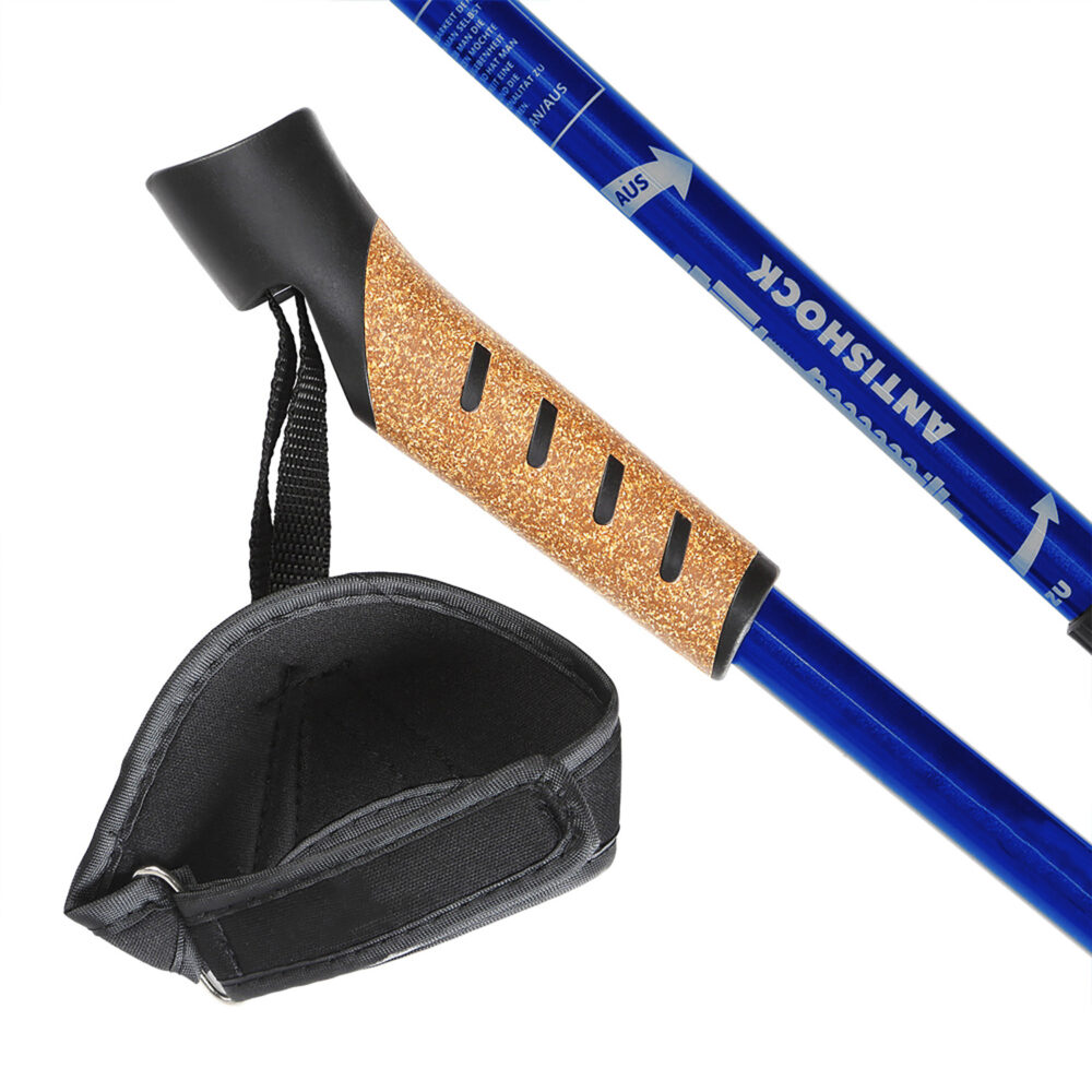 Ergonomiczne rękojeści – Nasze kijki posiadają ergonomicznie ukształtowane korkowe rękojeści, które doskonale leżą w dłoniach i zapewniają wygodny i pewny chwyt. To sprawia, że spacerowanie staje się bardziej komfortowe i przyjemne.