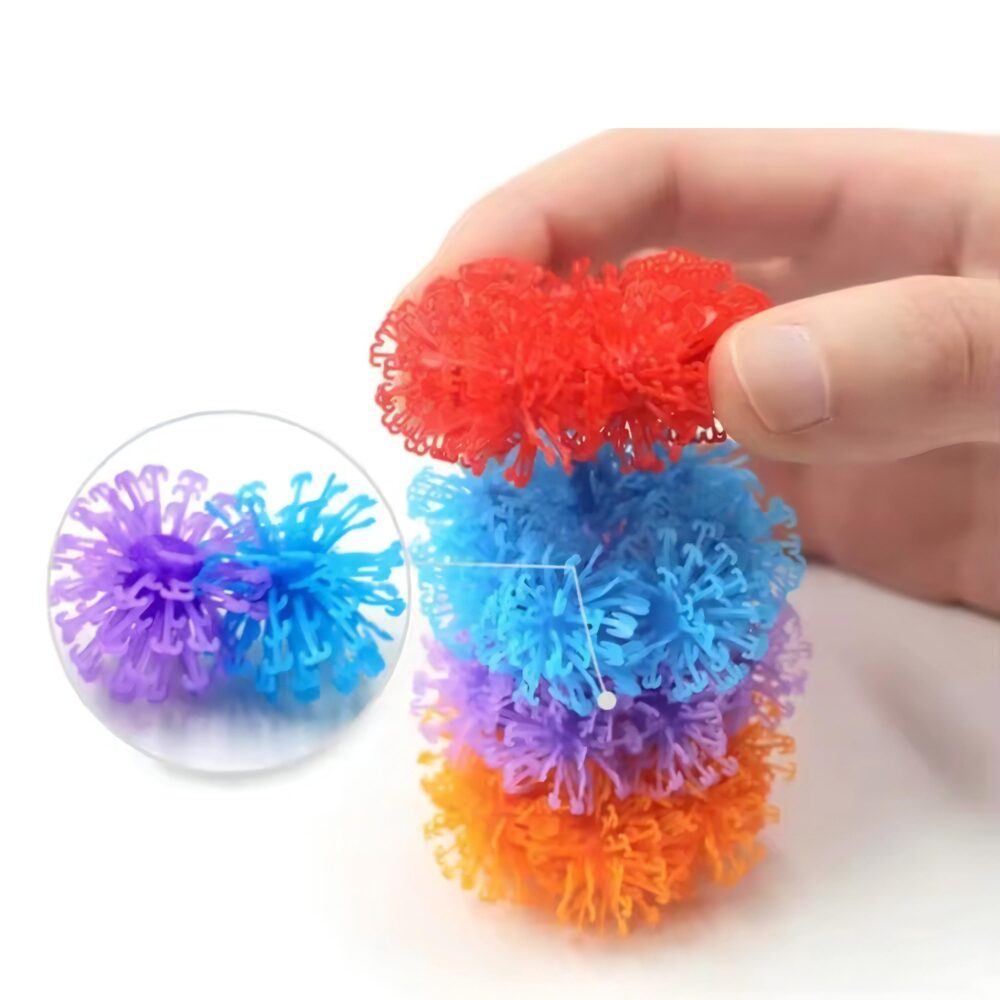 - Kolory rzepów: czerwony, pomarańczowy, zielony, żółty, fioletowy, niebieski, biały oraz czarny – dzięki czemu dziecko może tworzyć wielobarwne konstrukcje.