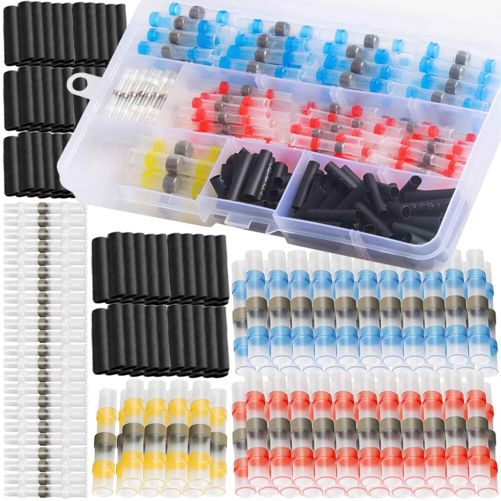 W komplecie znajdziesz aż 100 złączek z cyną oraz 160 koszulek termokurczliwych, dzięki czemu możesz wykonać setki połączeń – w domu, aucie, ogrodzie lub na łodzi. Różnorodność rozmiarów pozwala idealnie dopasować złączkę do przewodu.