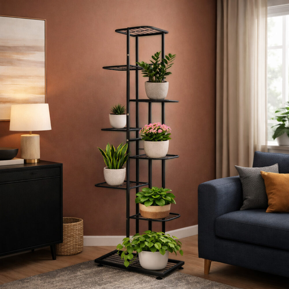 Metalowy kwietnik 8-poziomowy RENEW FORCE® to praktyczne rozwiązanie do efektownej ekspozycji roślin na niewielkiej przestrzeni. Pionowa, stabilna konstrukcja łączy funkcjonalność z nowoczesnym, industrialnym stylem.