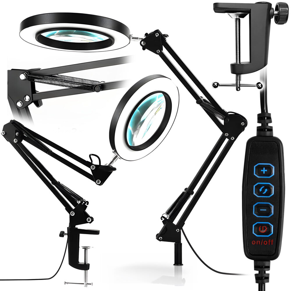 Nasza lampa kreślarska na biurko z lupą to niezbędne narzędzie dla każdego, kto potrzebuje precyzyjnego oświetlenia i powiększenia podczas pracy. Doskonała dla artystów, inżynierów, jubilerów oraz modelarzy!