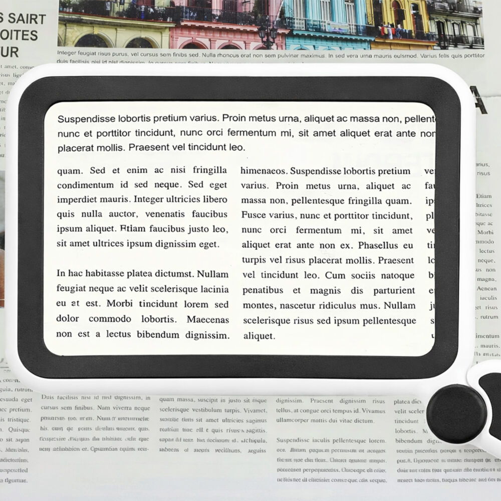 Prostokątna soczewka o dużej powierzchni naturalnie odwzorowuje sposób, w jaki patrzymy, dzięki czemu czytanie staje się płynne, wygodne i niewymagające dodatkowego ruchu ręką. Idealna dla seniorów, osób czytających dużo dokumentów, hobbystów i każdego, kto potrzebuje większej czytelności.