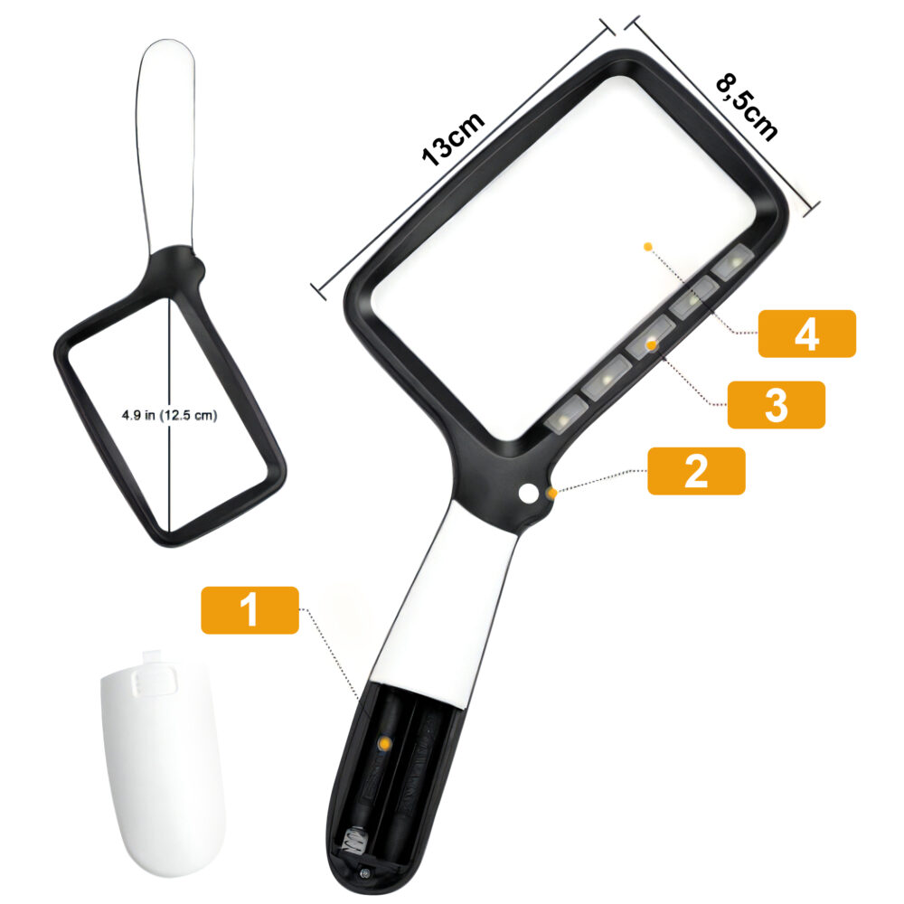 • 1 × Szklana lupa powiększająca z oświetleniem LED