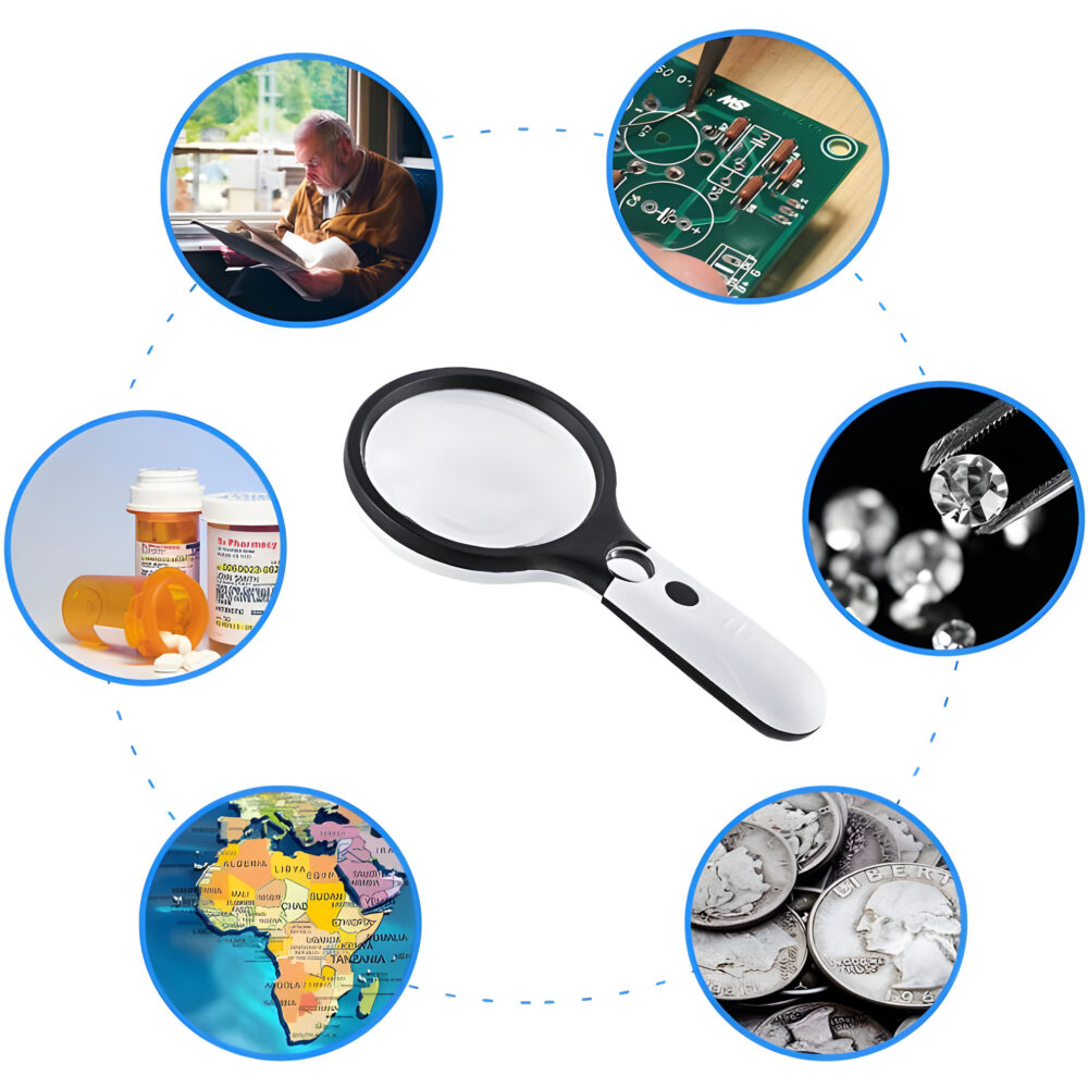 - 1 × Szklana lupa powiększająca z oświetleniem LED