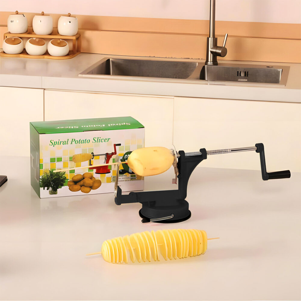 Maszynka do ziemniaków i warzyw umożliwia szybkie tworzenie zakręconych frytek i chipsów w formie spirali. Idealna do przygotowywania efektownych przekąsek w domu – prosta w obsłudze, solidna i praktyczna. Świetnie sprawdzi się na imprezy, do grilla lub codziennego gotowania.