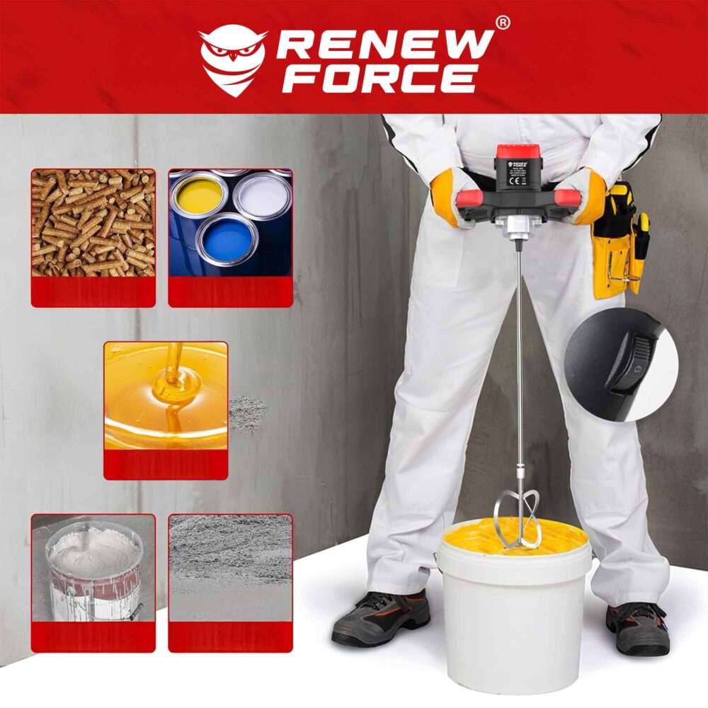 To nowoczesne mieszadło elektryczne XL to odpowiedź na potrzeby profesjonalistów i wymagających użytkowników domowych. Ogromna moc 2800 W, płynna regulacja obrotów i solidna konstrukcja sprawiają, że praca z gęstymi masami staje się szybka, wygodna i przewidywalna. Wybierając RENEW FORCE®, zyskujesz narzędzie, które realnie ułatwia każdy etap prac remontowych i budowlanych.