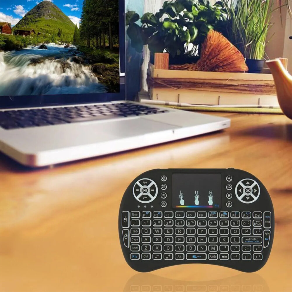 Mini klawiatura bezprzewodowa z touchpadem to idealne rozwiązanie do obsługi Smart TV, konsoli czy komputera z wygodnej odległości. Wyposażona w kolorowe podświetlenie LED RGB, zapewnia komfort użytkowania nawet w ciemności. Kompaktowa, lekka i funkcjonalna – idealna do codziennego użytku w domu i biurze.