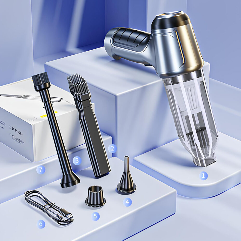 Poznaj odkurzacz, który w kilka chwil przywraca porządek tam, gdzie najczęściej robi się bałagan! RENEW FORCE® stworzył kompaktowe urządzenie 2w1, które łączy mocne ssanie 15000Pa, pełną swobodę bez kabla oraz wygodne ładowanie przez USB. To nie jest zwykły ręczny odkurzacz — to sprytne narzędzie do szybkich akcji: okruchy na kanapie, piasek na dywanikach, kurz w szczelinach, sierść na tapicerce i trudno dostępne zakamarki w samochodzie i w domu.