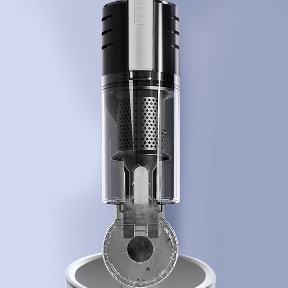 Korpus odkurzacza wykonano z trwałych tworzyw odpornych na wstrząsy i codzienną eksploatację. Wbudowany metalowy filtr HEPA eliminuje problem zużywania się klasycznych filtrów materiałowych – wystarczy go przepłukać, by odzyskał pełną sprawność. Konstrukcja bezworkowa zapewnia maksymalną wydajność ssania przez cały czas pracy.