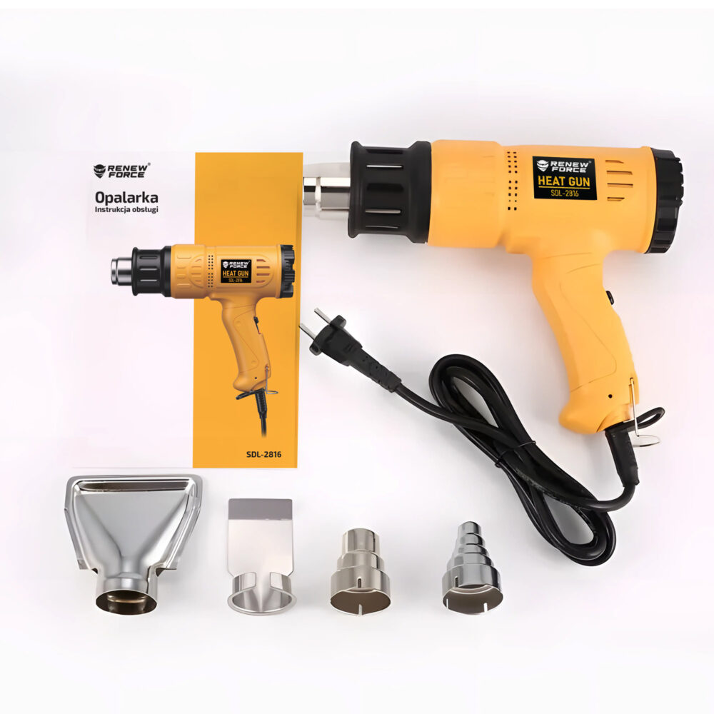 - Opalarka elektryczna 2000W z wyświetlaczem LCD – główne urządzenie z precyzyjną regulacją temperatury i nadmuchu.