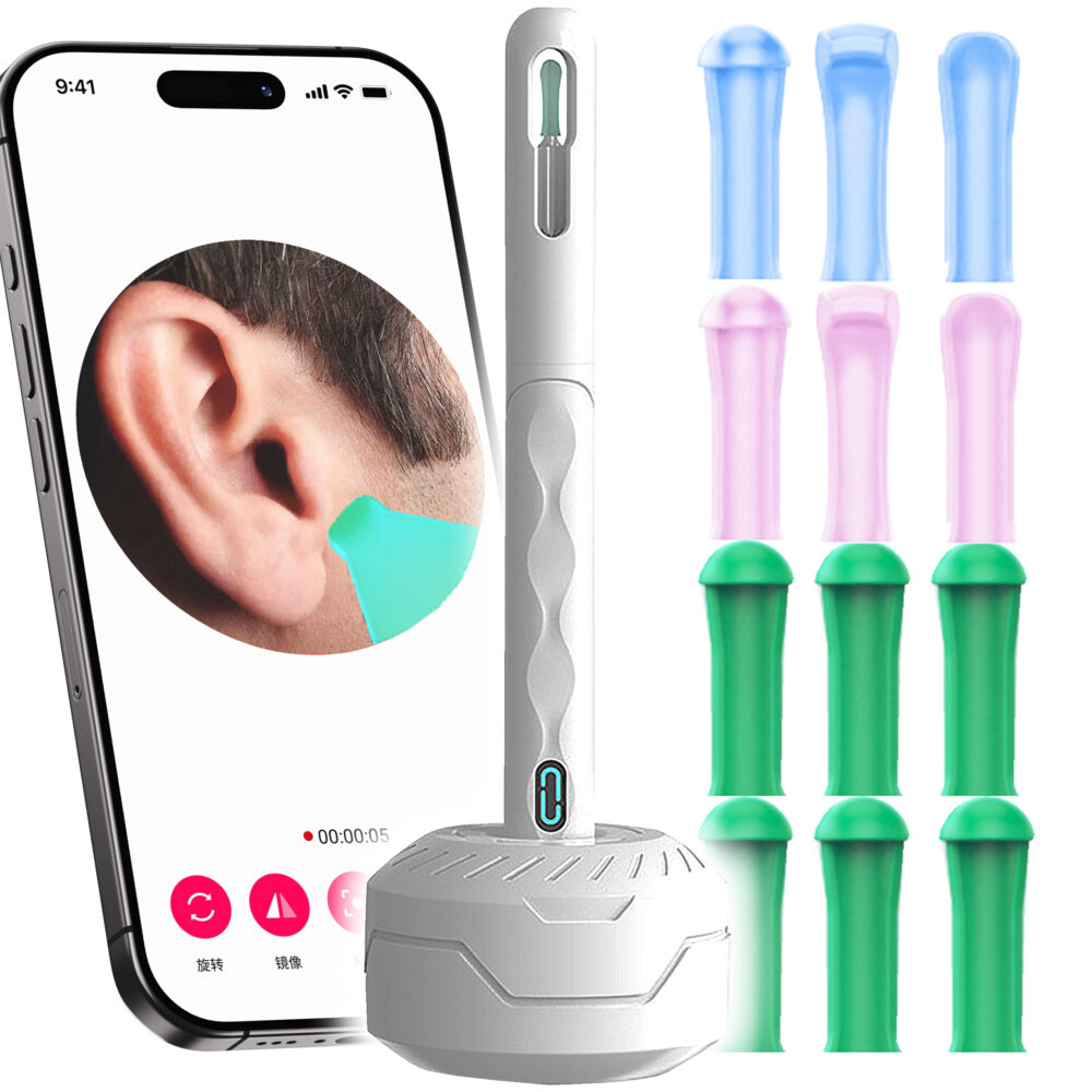 Smart otoskop Wi-Fi HD z kamerą 1080p i aplikacją mobilną – bezpieczne czyszczenie uszu i kontrola stanu ucha, nosa, gardła i skóry z wymiennymi końcówkami.