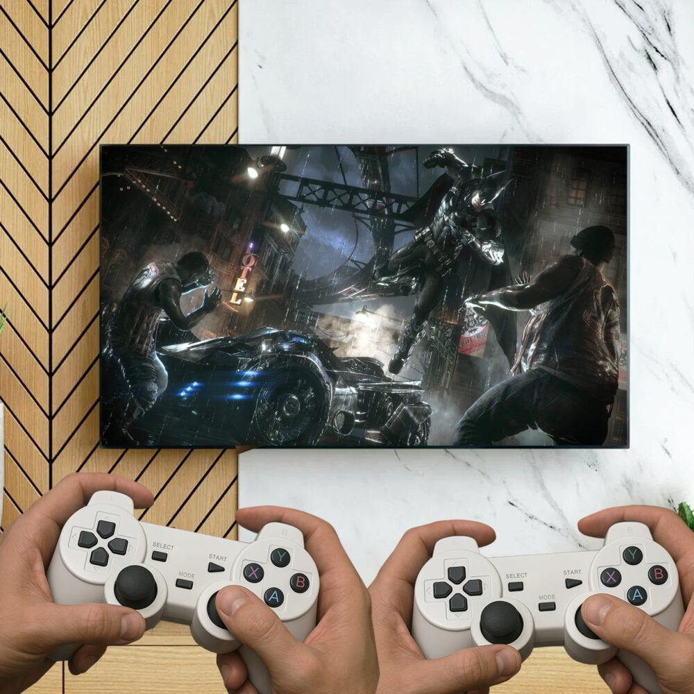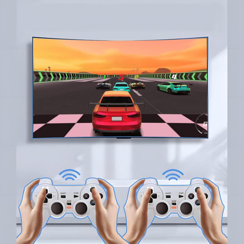 Konsola retro TV to idealna propozycja dla fanów klasycznych gier – wyposażona w 2 bezprzewodowe pady zapewnia komfortową zabawę dla dwóch graczy. Dzięki obsłudze 4K UltraHD oferuje wyraźny i płynny obraz na telewizorze, przenosząc klasyczne gry w nowoczesną jakość. Doskonała na prezent dla dzieci i dorosłych, którzy kochają gry retro.
