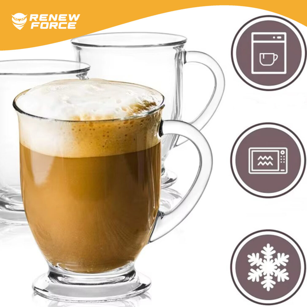 SZKLANKI Z UCHEM 450 ML – KOMPLET 6 SZTUK DO KAWY I HERBATY