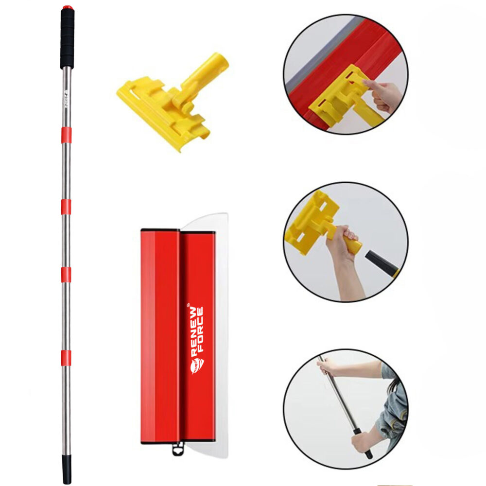 Regulowana długość umożliwia wygodną pracę w pomieszczeniach o dużej wysokości bez potrzeby korzystania z drabiny lub podestu. Kij składa się z pięciu skręcanych ze sobą segmentów, a jego końcowa długość zależy od liczby użytych elementów.