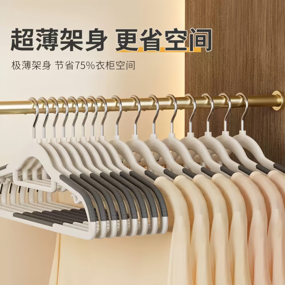 Wieszaki wykonane są z solidnego, elastycznego materiału ABS, dzięki czemu nie odkształcają się i utrzymują stabilny kształt nawet przy cięższej odzieży
