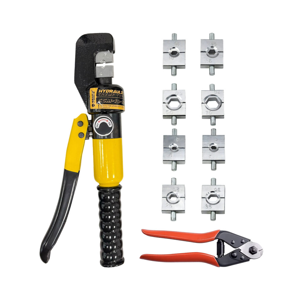 - Zaciskarkę hydrauliczną o sile 10 ton