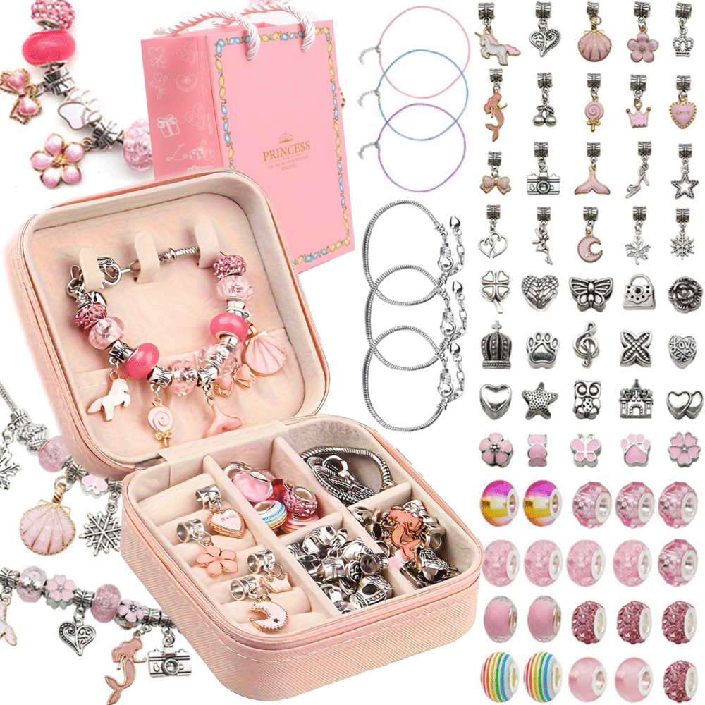 3 bransoletki i 3 naszyjniki DIY – W zestawie znajdują się trzy bransoletki oraz trzy naszyjniki z możliwością regulacji długości. To pozwala na idealne dopasowanie ozdób do każdego dziecka. Bransoletki i naszyjniki mają łatwy system odkręcania końcówki, dzięki czemu można szybko i samodzielnie zmieniać zawieszki, bez pomocy dorosłych. To proste, wygodne i trwałe rozwiązanie, które pozwala tworzyć biżuterię na różne okazje.