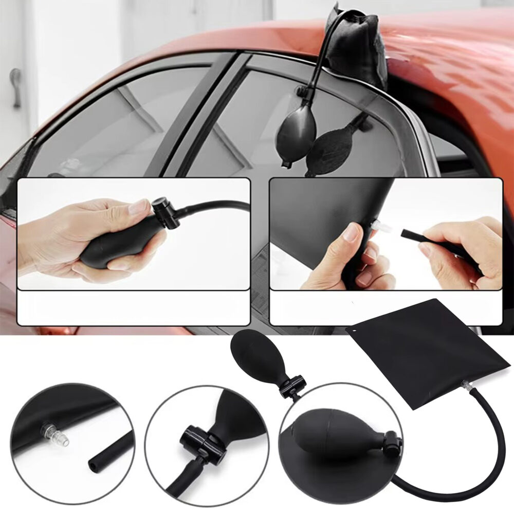 💡 Wskazówka dla użytkownika: pompuj poduszkę stopniowo i z wyczuciem – wystarczy niewielkie rozszerzenie szczeliny, aby uzyskać dostęp. Zbyt mocne rozpieranie może nadmiernie naprężyć elementy karoserii lub uszczelki. Po zakończonej pracy powoli wypuść powietrze, aby element wrócił do pierwotnego położenia.