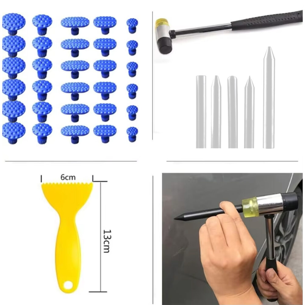 Ten zestaw to komplet narzędzi, który pozwala usunąć nawet trudniejsze wgniotki bez konieczności lakierowania — idealny zarówno dla domowych majsterkowiczów, jak i profesjonalistów! 😊