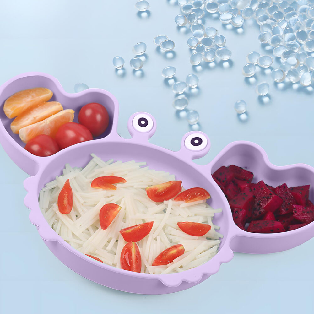 - Praktyczny talerzyk z trzema przegródkami na jedzenie – w kształcie uroczego kraba